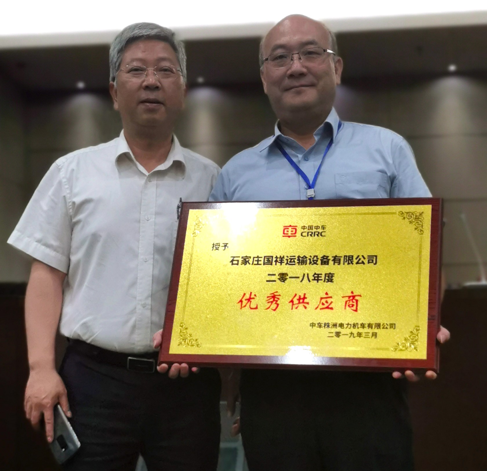 May 30, 2019, our company came off the best from the annual suppliers conference held by CRRC ZELC. With our outstanding achievements in technology, quality, price, delivery, whole-course service and other aspects, our company won the first place in total score and was awarded as "excellent supplier" of 2018. Our general manager Dr. Li Zongxing, attended the conference and received the honor.